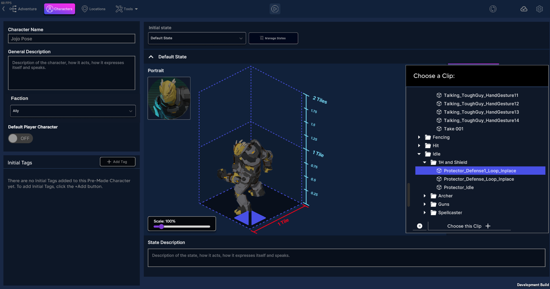 Design and customize characters with no 3D experience required. Choose from a wide range of prebuilt models in our content packs and easily adjust size, appearance, animations, and behavior. Set up how characters look, move, and react during dialogue, exploration, or combat.